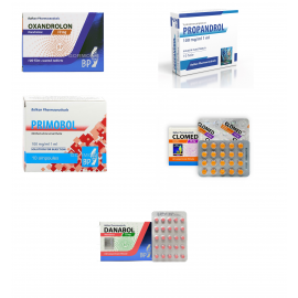Состав курса: Testosterone Propionat (13 ампул), Primobol (24 ампулы), Oxandrolone (120 таб), Danabol (120 таб), Clomed (20 таб)