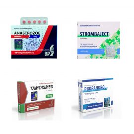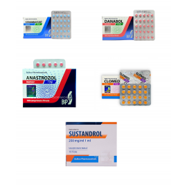 Состав курса: Sustanon 250 от Organon  (6 ампул), Strombafort (100 таб), Danabol (100 таб), Anastrozol (20 таб), Clomed (20 таб)
