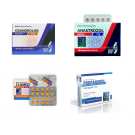 Состав курса: Оксандролон (260 таб), Тестостерон Пропионат (20 ампул), Анастрозол (20 таб), Кломид (30таб)